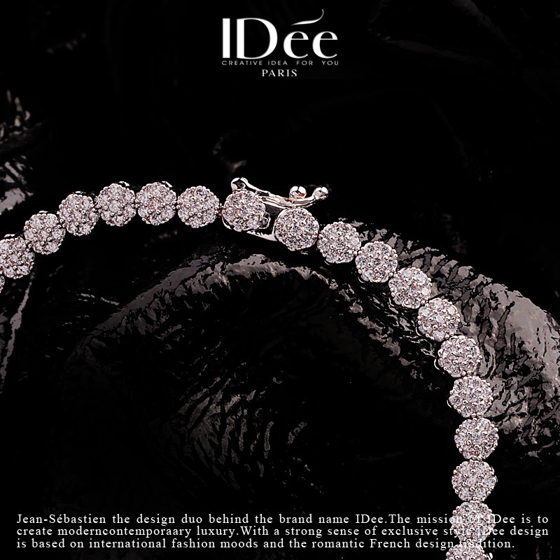 法国IDee繁花闪钻宴会套装饰品项链女婚纱新娘婚礼饰品奢华四件套